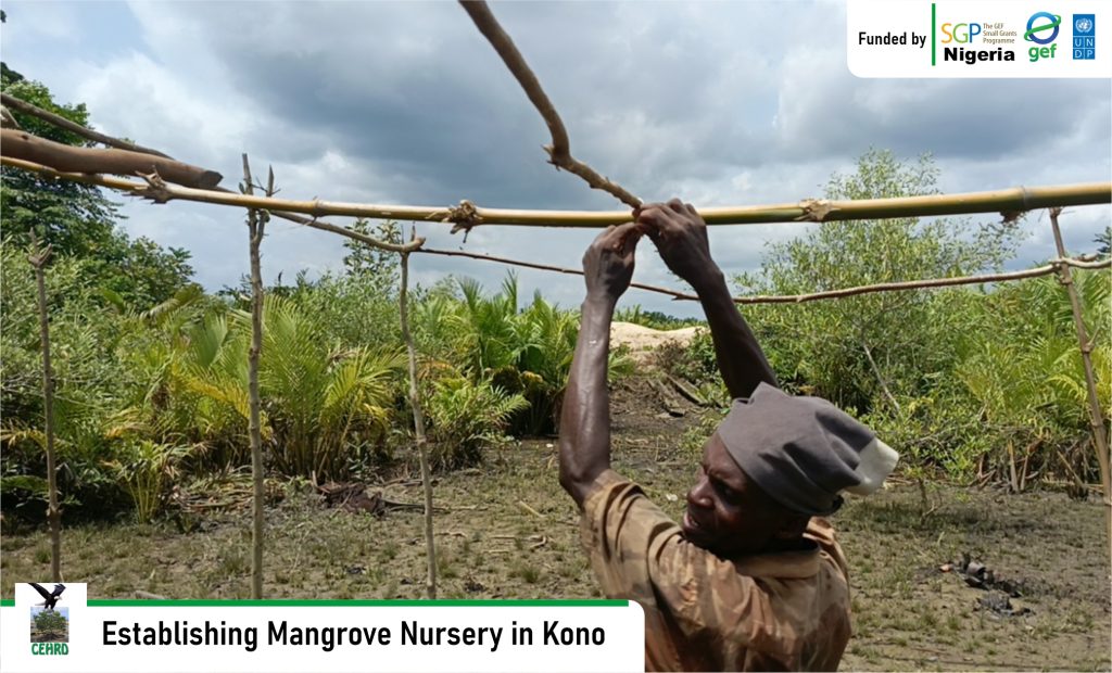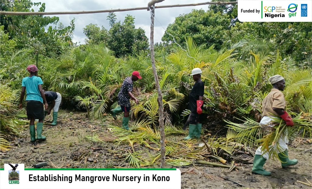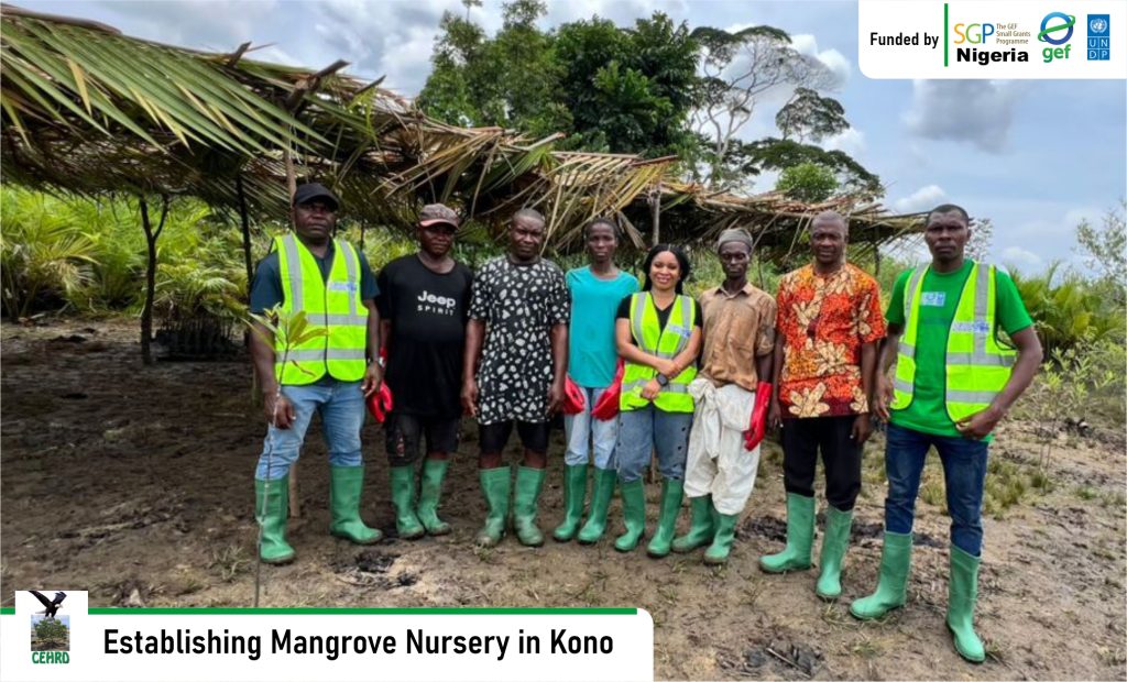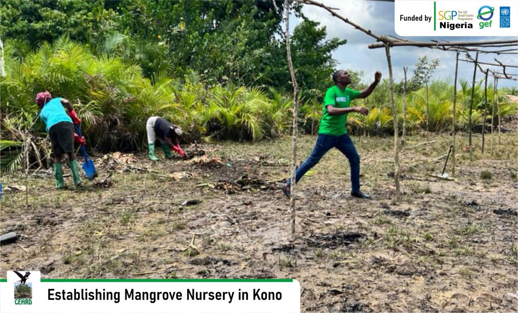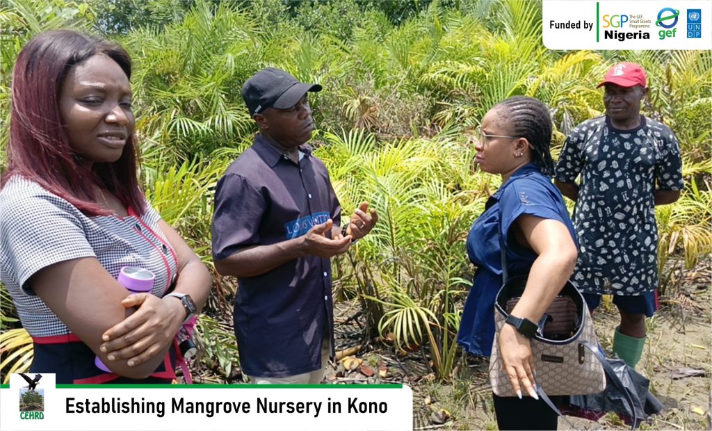 CEHRD implementing a Global Environmental Fund Small Grant Project (GEF-SGP) Nigeria, United Nations Development Programme funded project titled: “Accelerating Community-Led Mangrove Restoration”, has established a Mangrove Nursery Site in Kono community, Khana Local Government Area, Rivers State.