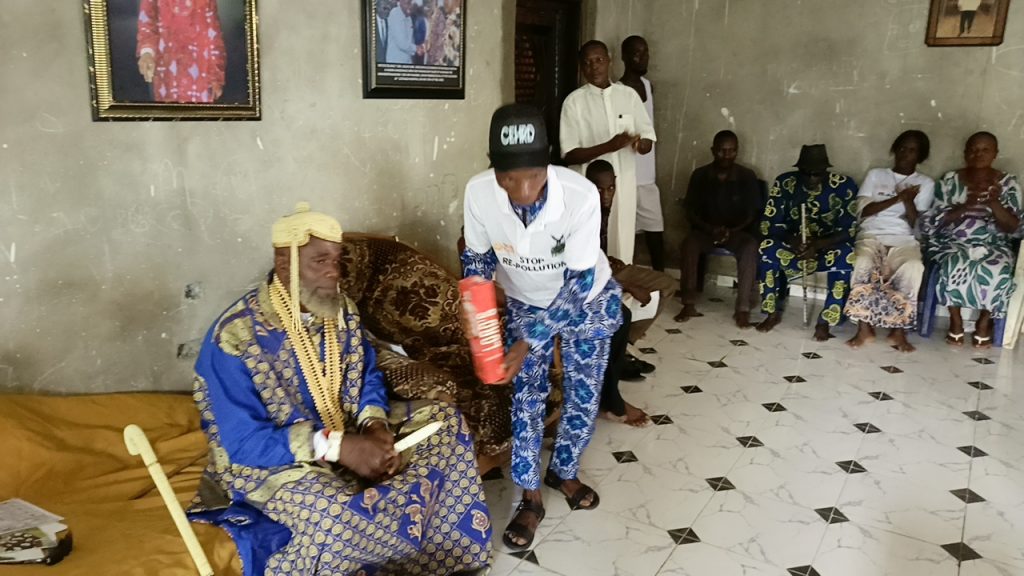 The Ama-miepinamo-Owei the 13th appreciated CEHRD’s efforts when he received CEHRD’s team in his palace during the awareness rally on mitigating Oil Re-pollution in Yenegoa Local Government Area, Bayelsa State, Nigeria.