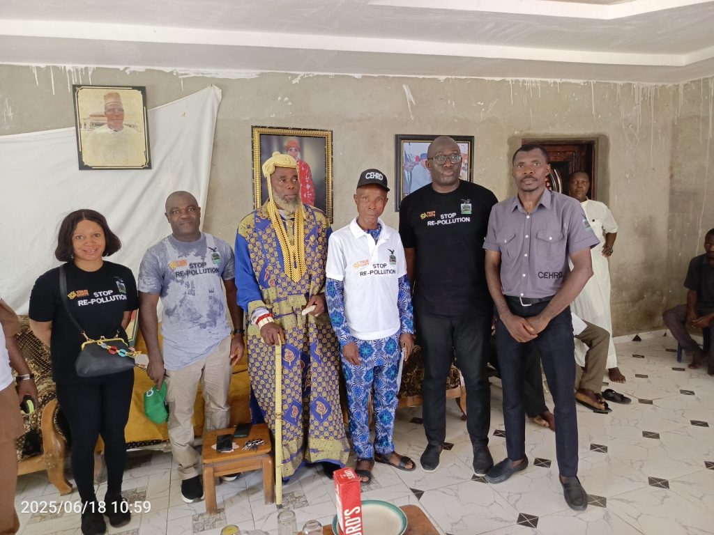 The paramount ruler of federated Ikarama communities, Yenegoa Local Government Area, Bayelsa State, His Royal Highness Wariebi Jonah Berebozigha has eulogies the Centre for Environment, Human Rights and Development (CEHRD) for its efforts towards addressing the issues of oil re-pollution in Niger Delta.