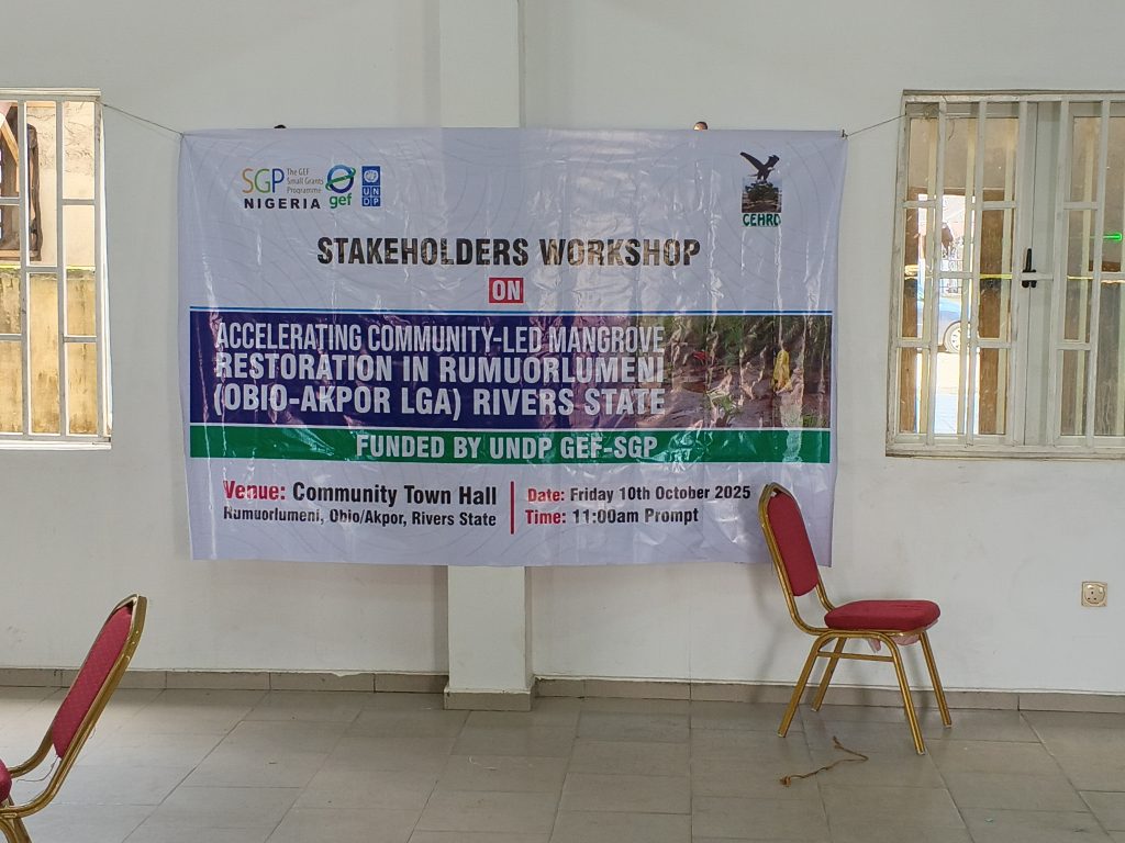 Speaking during a Stakeholder Meeting organized by CEHRD in Rumuolumeni, Obio-Akpor Local Government Area in Rivers State, the Rumuolumeni Youth president, Mr. Felix Chinda stated that they as community members were ignorant of the resources in their community. He stated that their ignorance has cost them the destruction of their rich mangrove wealth as some of their mangroves have been destroyed due to industrialization, illegal refining popularly know as “kpofire”