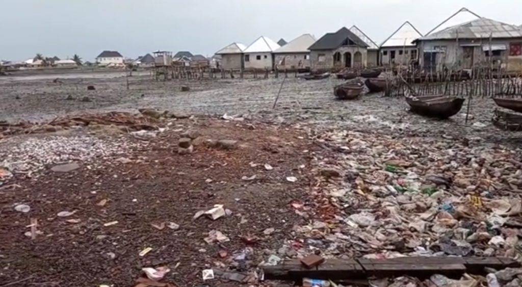A polluted waterfront at Bundu Community, Rivers State, Nigeria. Photo: Josiah Egbilika, CEHRD